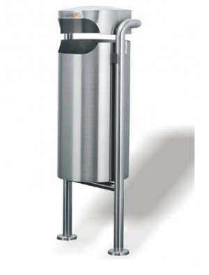 Besonderheiten: | Die Standascher-Abfallbehälter-Kombination STYLUS 180 aus Edelstahl eignet sich besonders für teilüberdachte und der STYLUS 181 mit seinem Regenschutz über der Aschenbecher auch für weitere Außenbereiche. Die Ascherschale des SN-180 und SN-181 ist mit einer gelochten Abdeckung aus Edelstahl versehen, so daß Zigarettenabfälle nicht mehr sichtbar sind und durch Wind nicht weggeweht werden können. Beide Behälter sind mit dem praktischen, innenliegenden Beutelhalter sowie einem Fuß zum Aufdübeln oder Einbetonieren (optional) versehen und nahtlos verarbeitet. | |